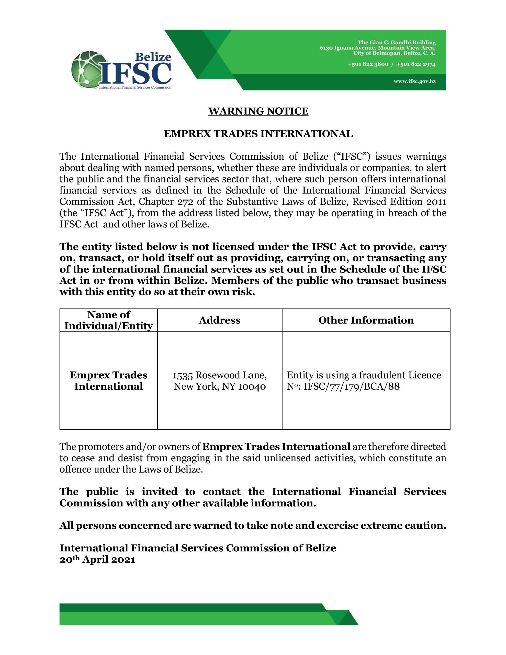 Public Notice – Extension of Moratorium Trading in Financial and Commodity Based – Derivative Instruments and Other Securities (“Trading in Securities”)
