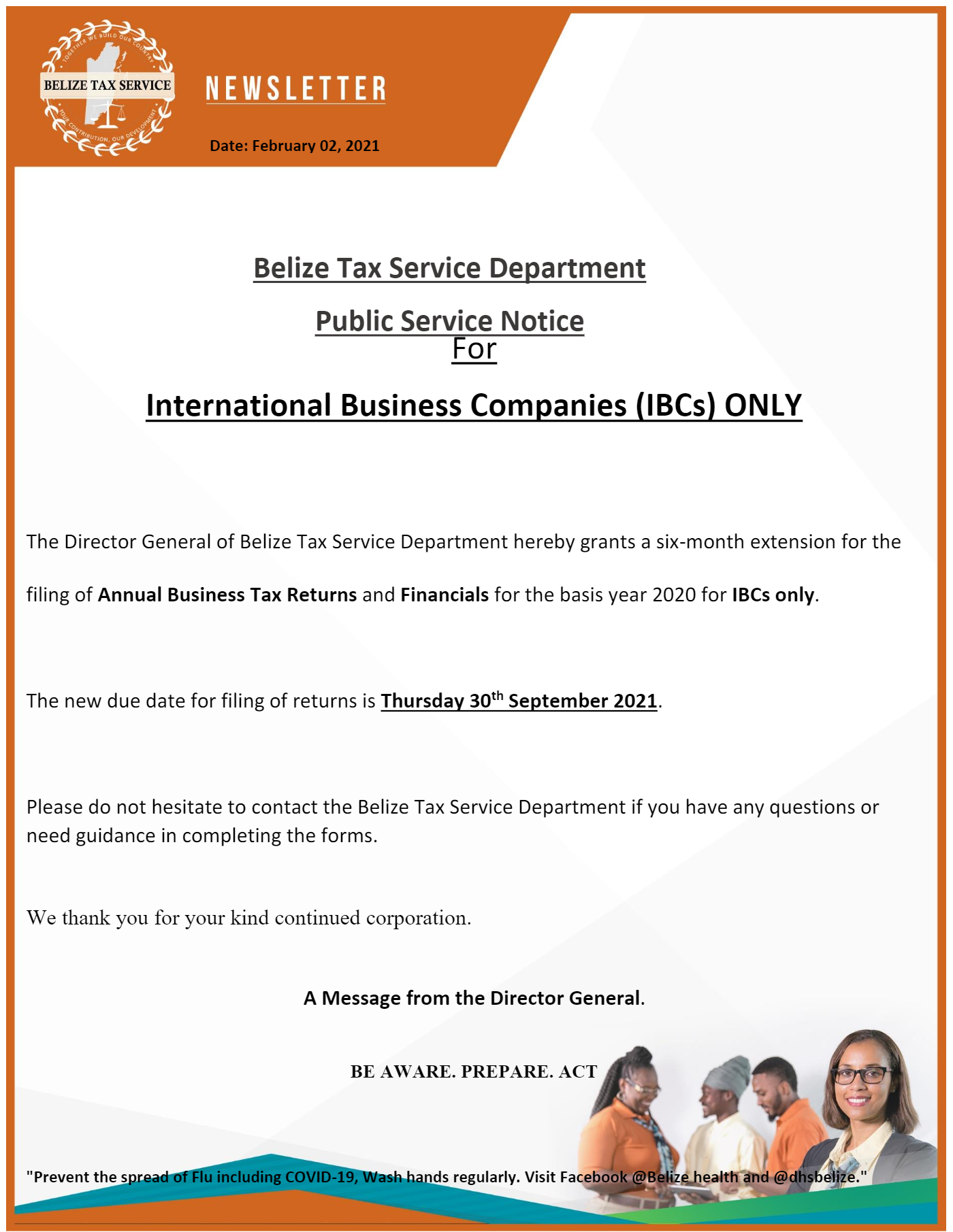 The Director General of Belize Tax Service Department hereby grants a six-month extension for the